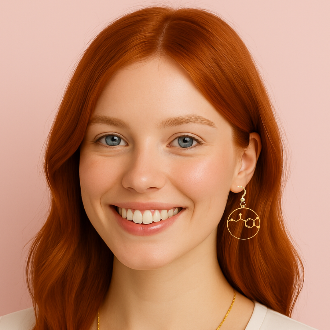 These adrenaline molecule earrings or necklace combine bold style with scientific flair, perfect for those who live life with energy and passion. Each earring intricately features the adrenaline molecule, a symbol of excitement and vitality. Available in both gold and silver, these earrings offer a versatile and dynamic accessory that enhances any look. Crafted from high-quality materials, they are designed to be both durable and sleek, making them an ideal gift or personal statement piece for those who appreciate the power of science and the thrill of life.