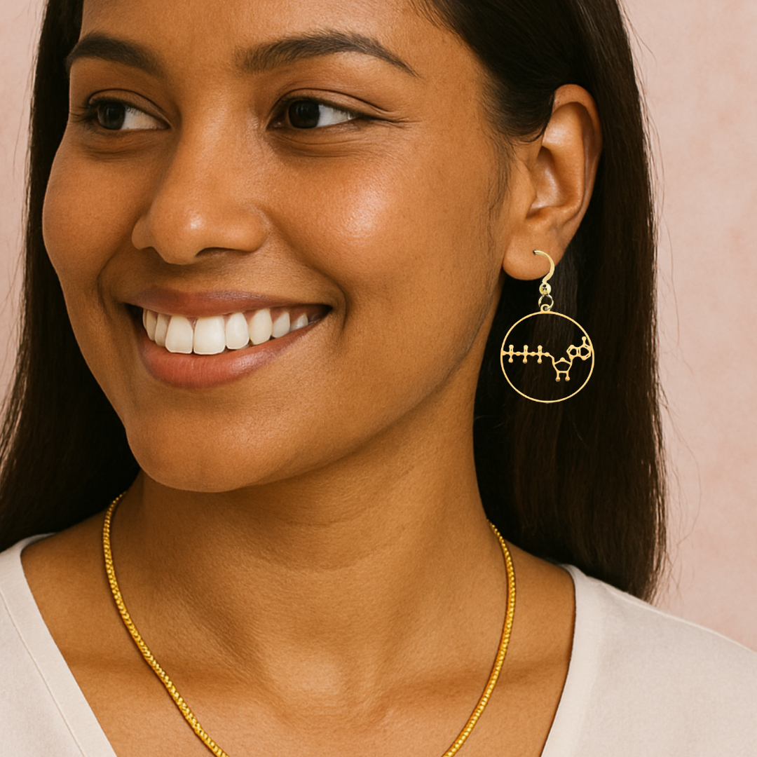 These ATP molecule earrings are a perfect blend of elegance and scientific significance, ideal for those who appreciate both style and the wonders of biology. Each earring intricately showcases the ATP molecule, the energy currency of life, symbolizing vitality and power. Available in both gold and silver, these earrings offer a versatile and sophisticated accessory that complements any outfit. Crafted from high-quality materials, they ensure durability while maintaining a chic aesthetic, making them an excellent gift or personal statement piece for those who celebrate the intersection of science and fashion.