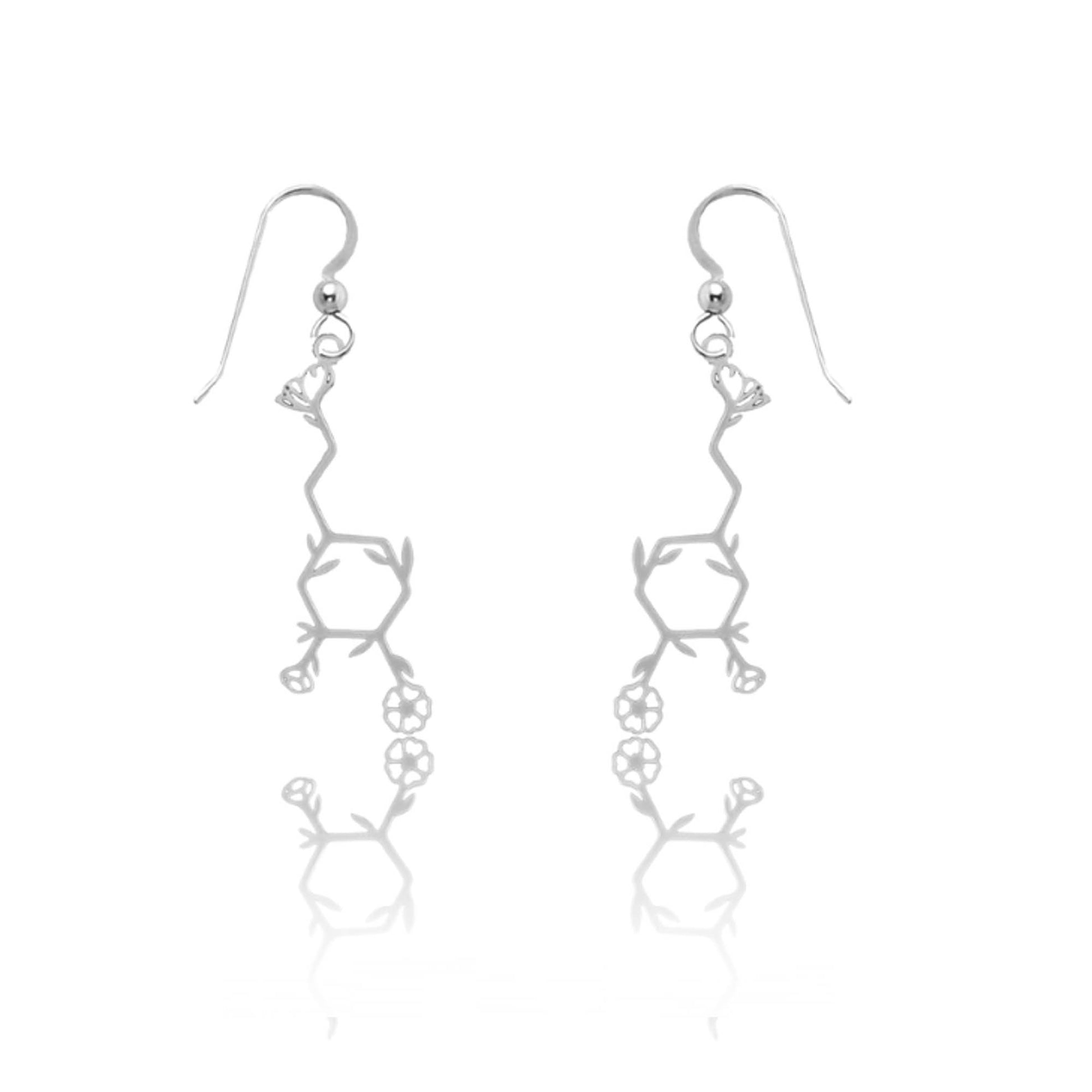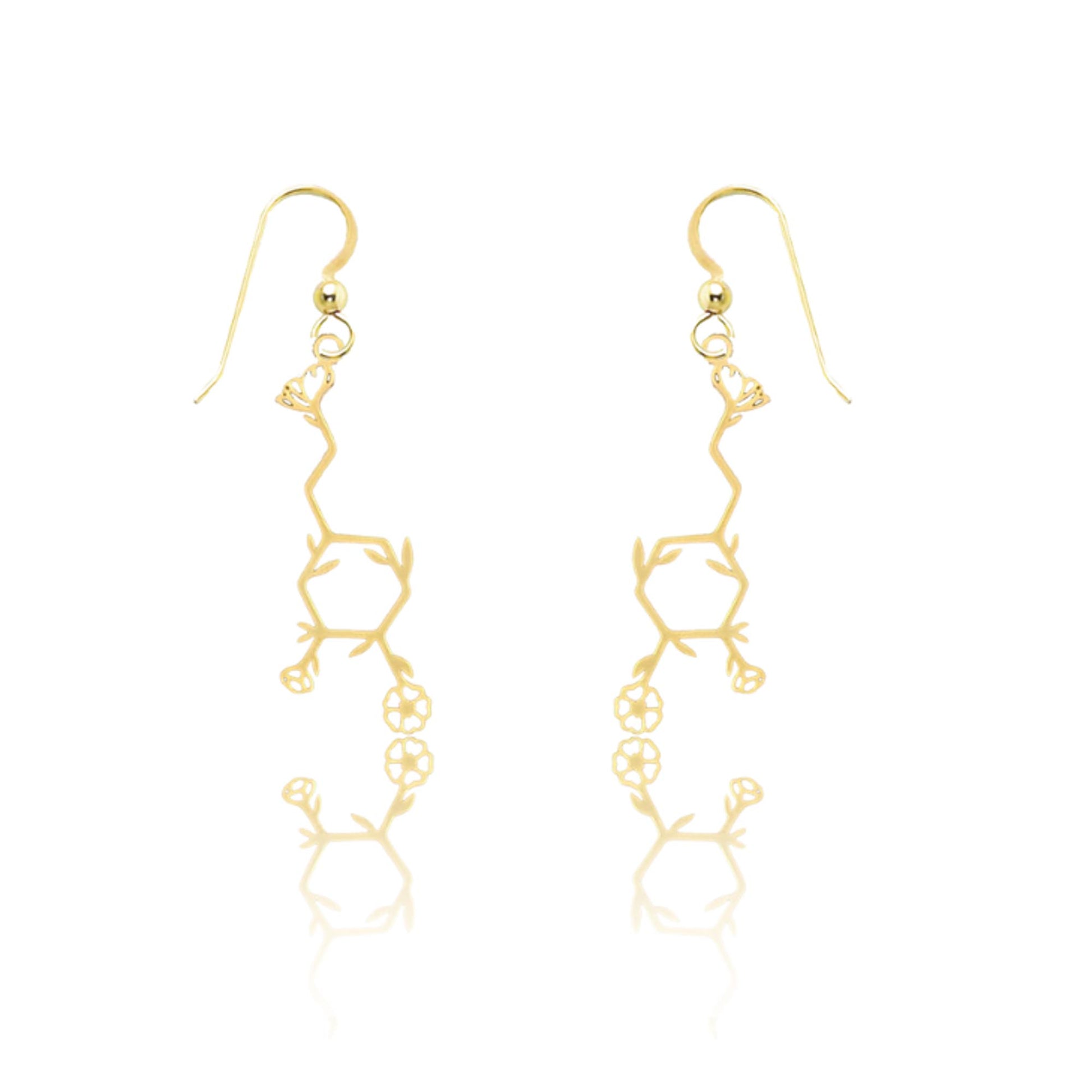 These floral dopamine earrings beautifully blend science with nature, featuring a delicate floral design intertwined with the structure of dopamine, the neurotransmitter associated with happiness and reward. Perfect for biology enthusiasts and nature lovers alike, these earrings are available in both gold and silver, making them a stylish and meaningful accessory for any occasion.