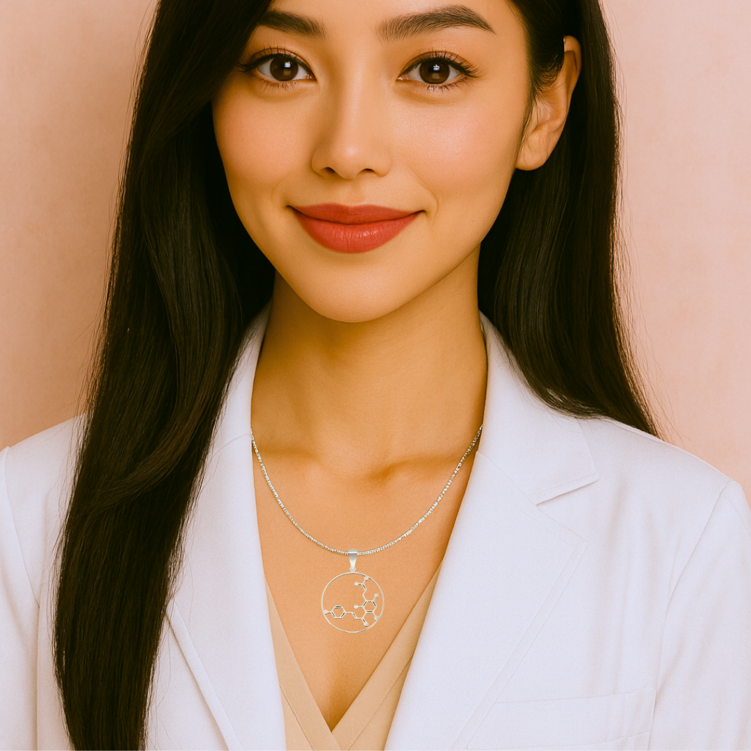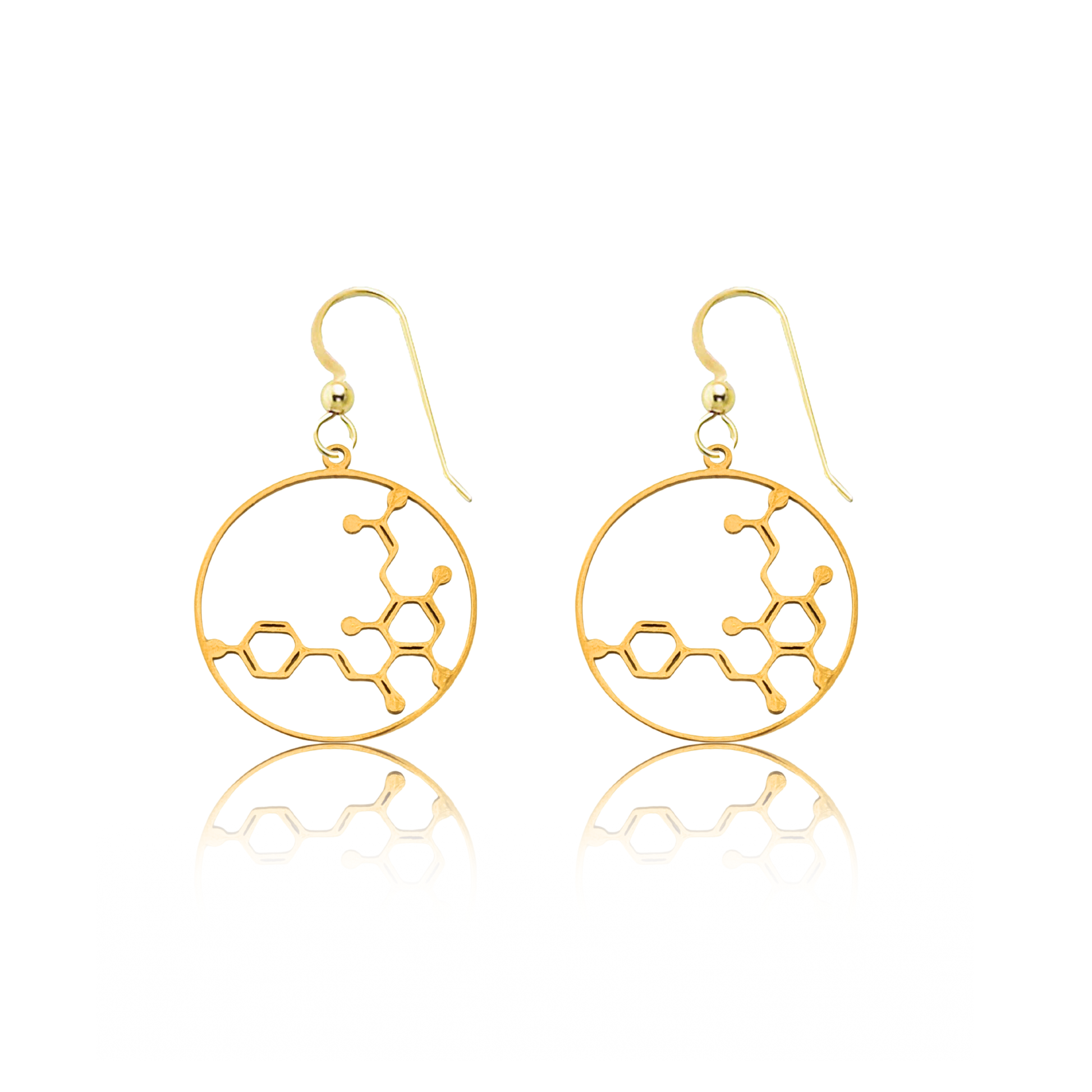 The hops molecule necklace and earrings are a stylish tribute to the chemistry of brewing. Featuring the molecular structure of hops, these earrings are perfect for beer lovers and science enthusiasts alike. Crafted in silver and gold, they add a touch of elegance and uniqueness to any outfit, making them a must-have accessory for those who appreciate the blend of science and craftsmanship.