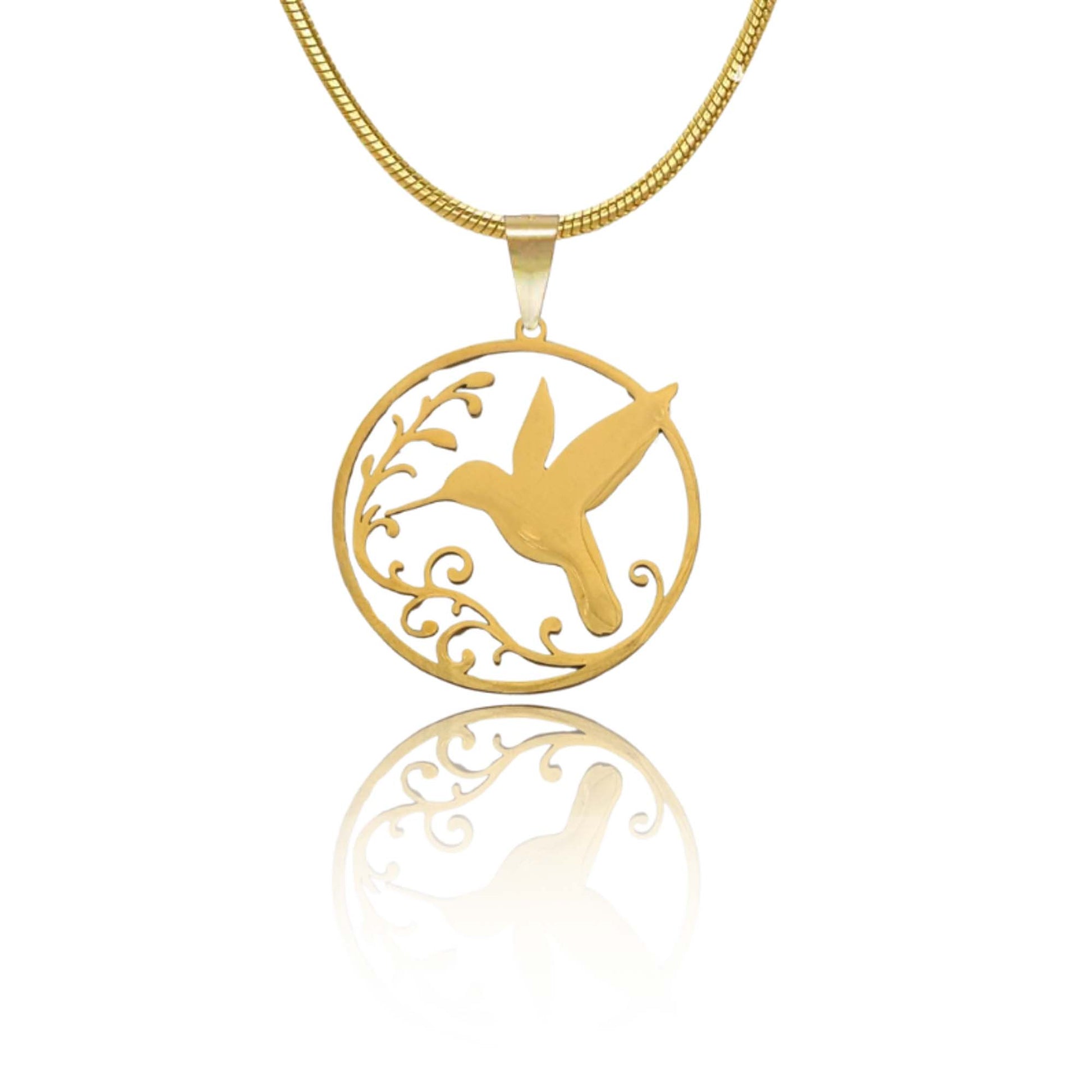 This hummingbird necklace captures the grace and beauty of nature's most delicate pollinator. Perfect for biology enthusiasts and nature lovers, it symbolizes the wonder of the natural world. Available in both gold and silver, this intricately designed necklace adds a touch of elegance to any outfit while celebrating the vibrant energy of the hummingbird.