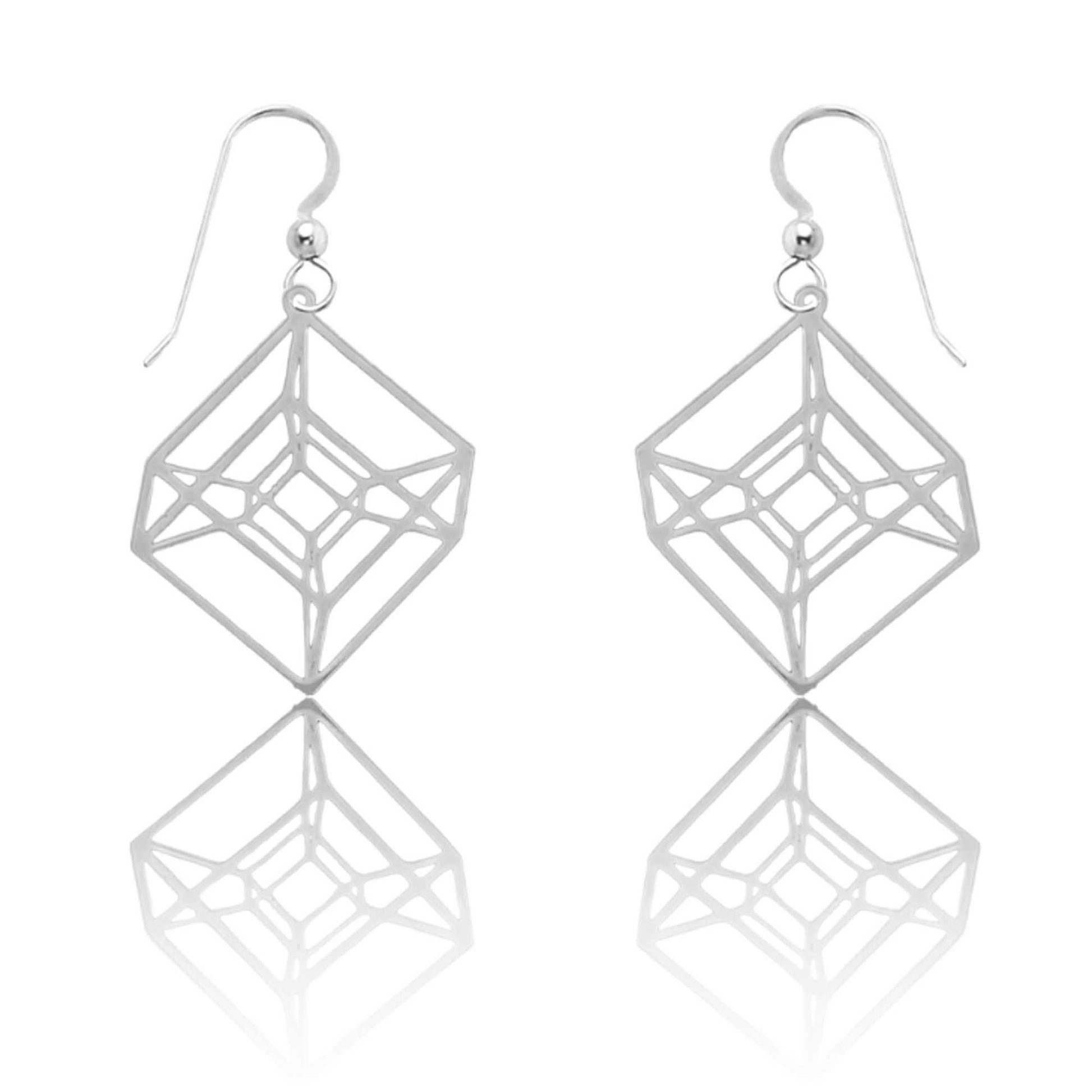 These Hypercube earrings blend mathematical elegance with scientific intrigue. Featuring a detailed hypercube design, they are perfect for those who appreciate the beauty of multidimensional geometry. Available in both gold and silver, these earrings are a unique addition to any collection, making them ideal for math enthusiasts and lovers of distinctive jewelry.