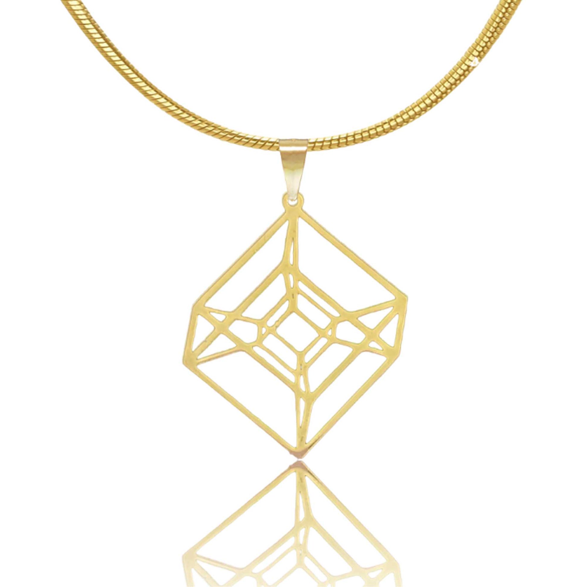 This Hypercube necklace beautifully represents the intersection of art and multidimensional geometry. Perfect for math enthusiasts and those fascinated by complex structures, this piece symbolizes the elegance of higher dimensions. Available in both gold and silver, it adds a touch of scientific sophistication to any jewelry collection.
