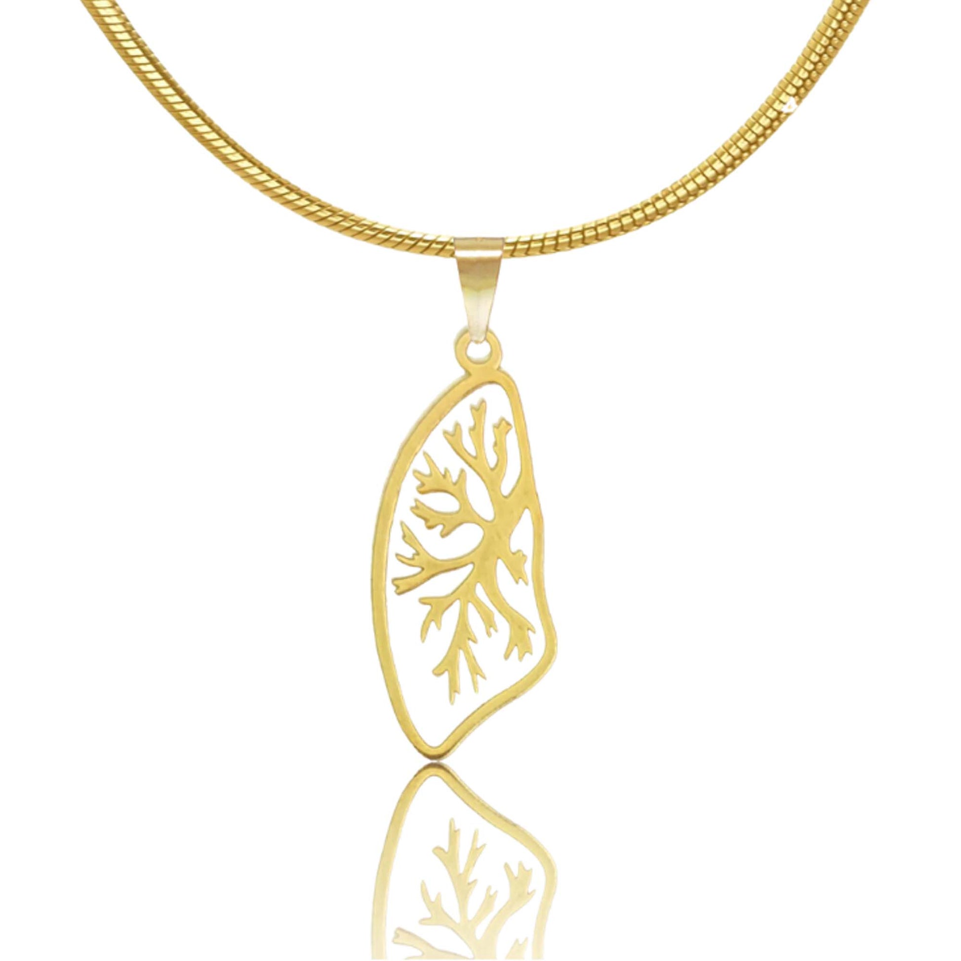 This lung necklace beautifully captures the intricate design of the respiratory system, making it a meaningful accessory for biology enthusiasts and medical professionals. Crafted with attention to detail, it symbolizes the breath of life and the wonders of human anatomy. Available in both gold and silver, this necklace is a perfect blend of science and elegance, ideal for those who appreciate the beauty of biology.