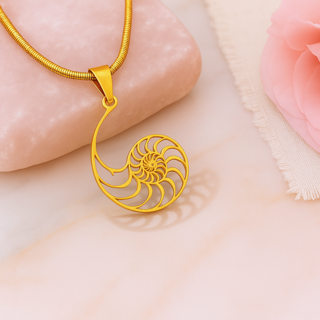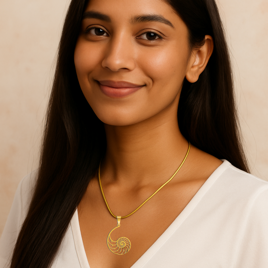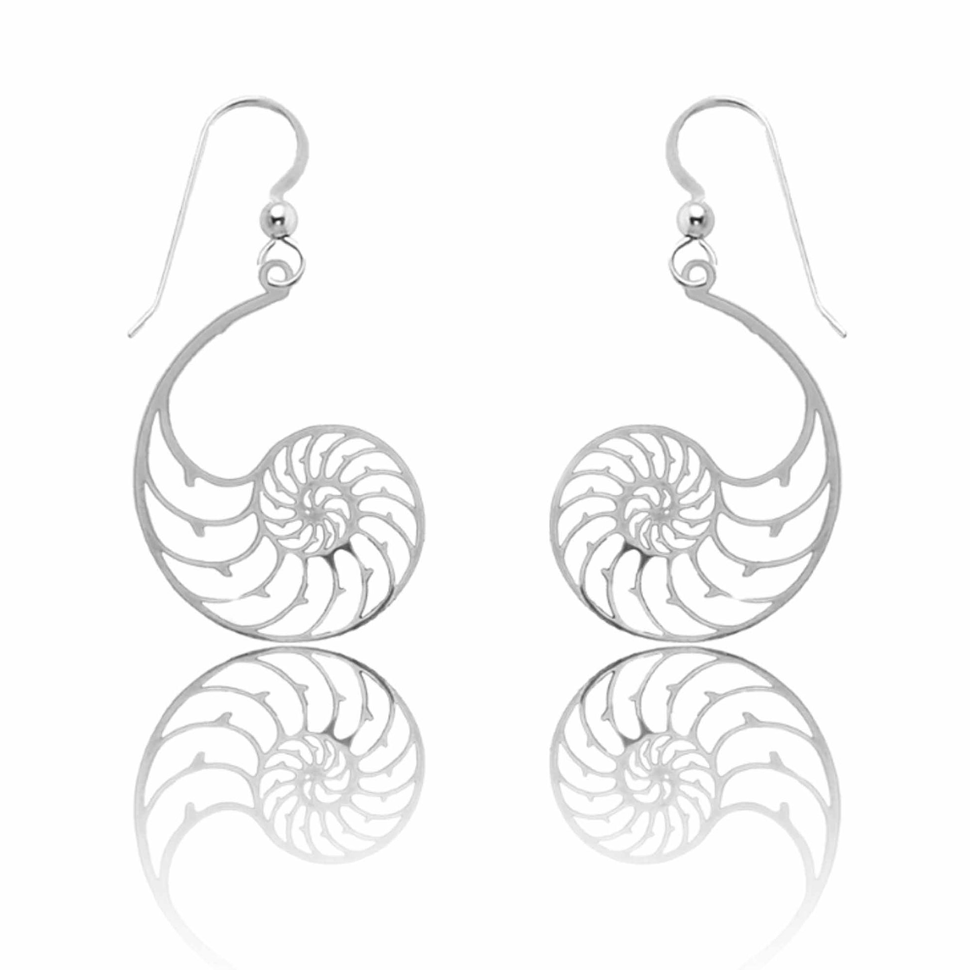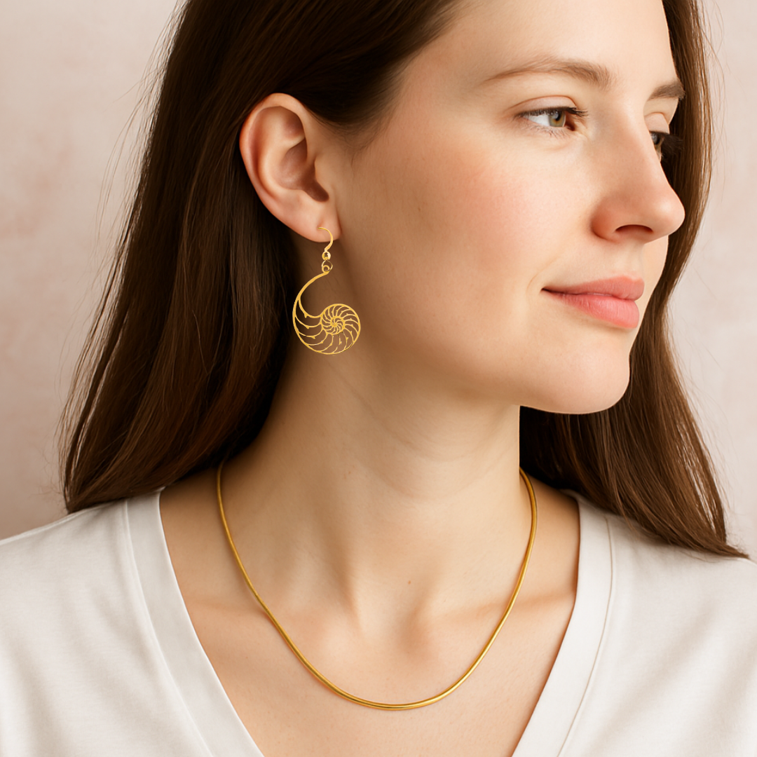 These nautilus shell earrings and necklace capture the intricate beauty of nature's geometry, making them a perfect accessory for biology enthusiasts and lovers of the natural world. Crafted with attention to detail, they celebrate the elegance of the Fibeonacci spiral found in nautilus shells. Available in both gold and silver, these shell jewelry add a touch of scientific charm to any outfit.