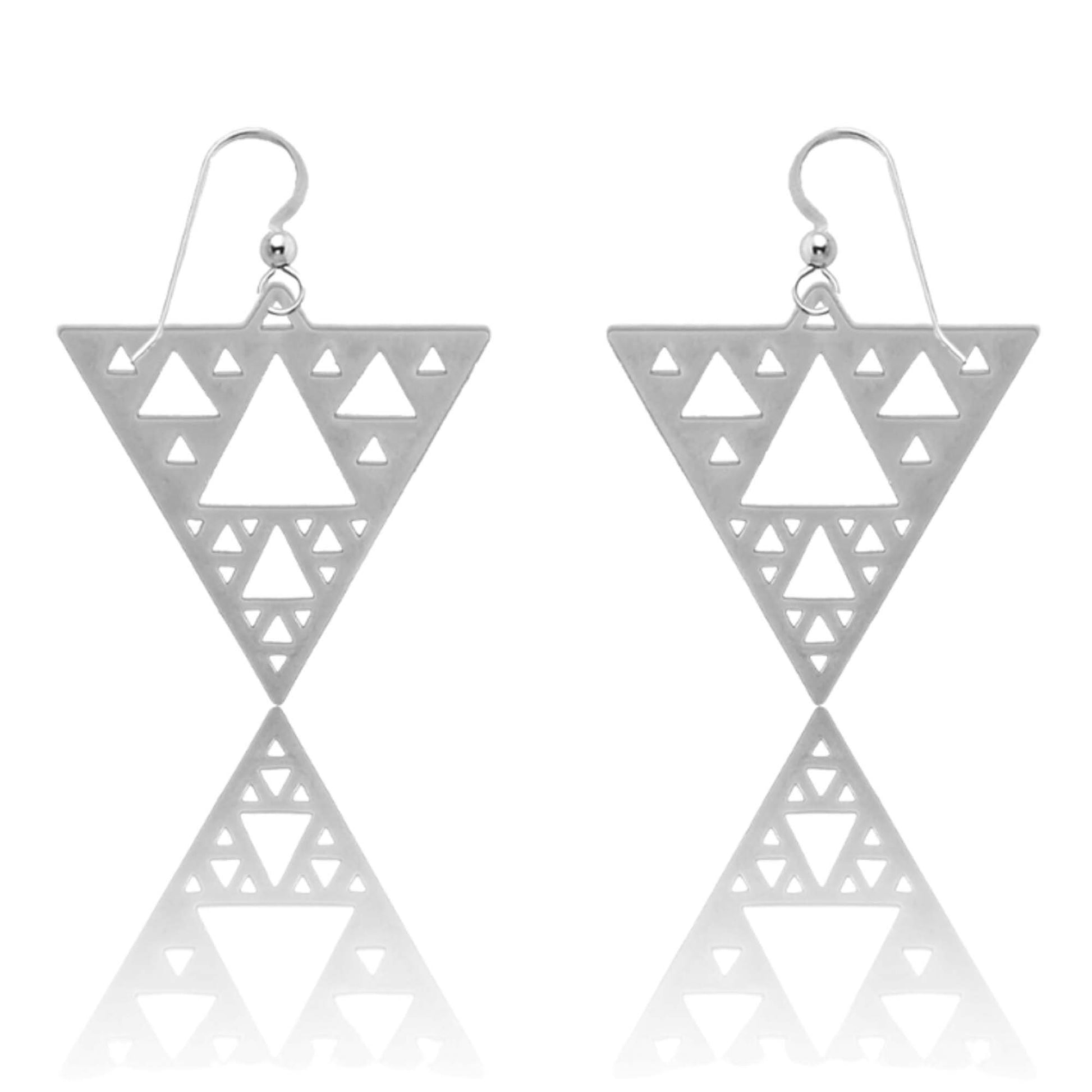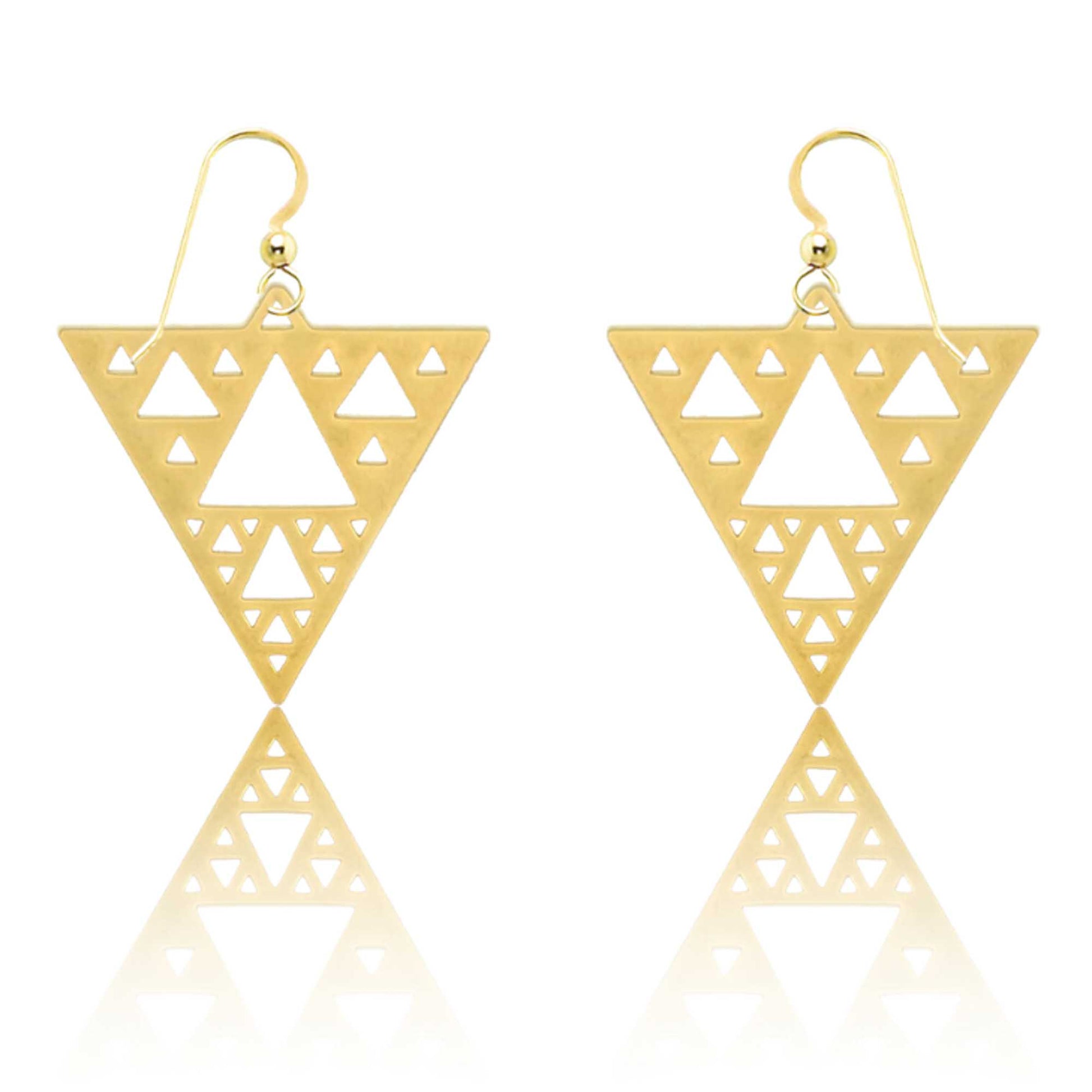 These Sierpinski triangle earrings beautifully blend mathematical elegance with modern design. Inspired by the famous fractal pattern, they symbolize infinite complexity within simplicity, making them a perfect accessory for math enthusiasts and those who appreciate unique geometric art. Available in both gold and silver, these earrings add a touch of sophistication and intellect to any outfit.