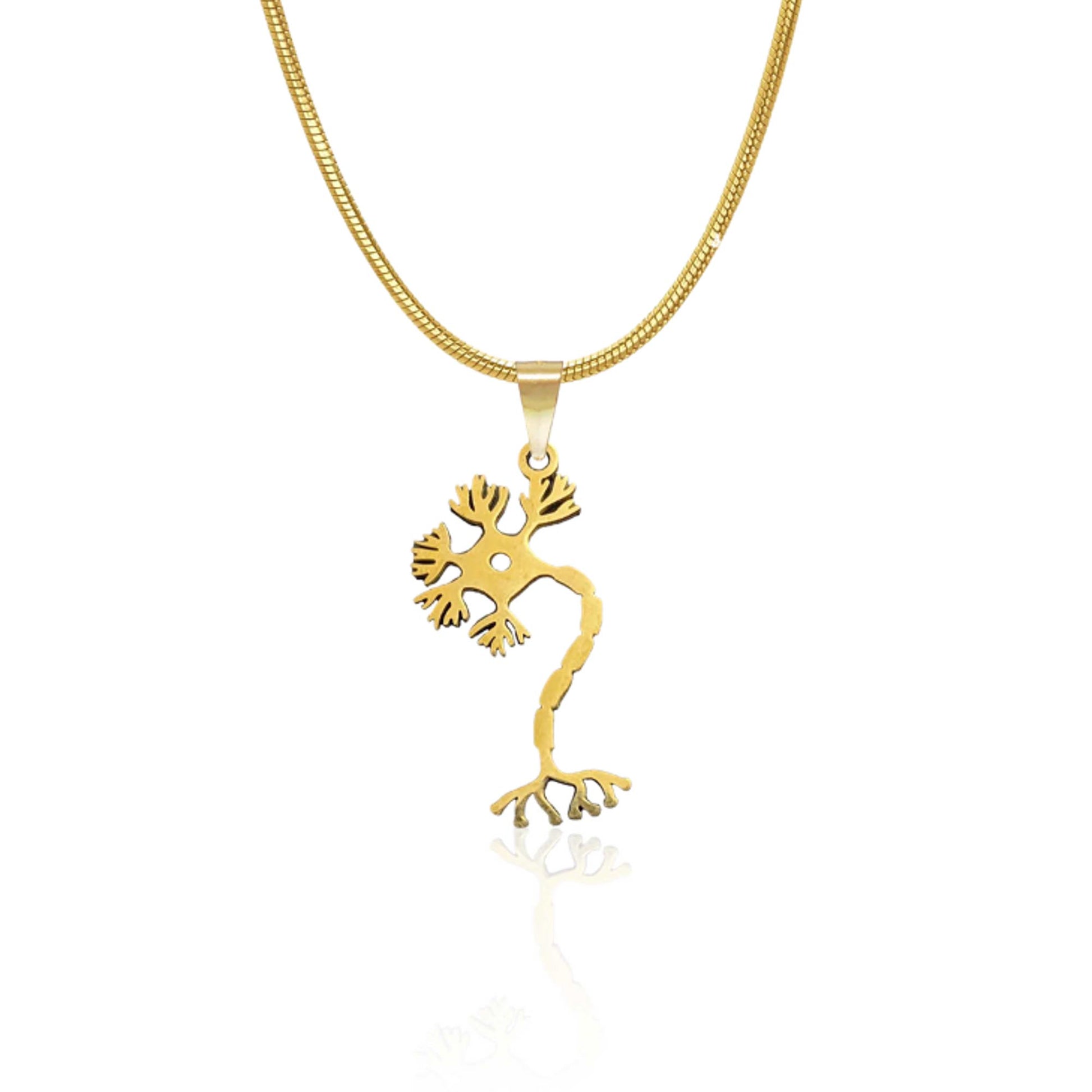 This neuron necklace beautifully captures the intricate design of a neuron, symbolizing the complexity and wonder of the human brain. Perfect for biology enthusiasts and neuroscience lovers, this piece blends science with elegance, making it a unique addition to any jewelry collection. Available in both gold and silver, it celebrates the connection between science and art.