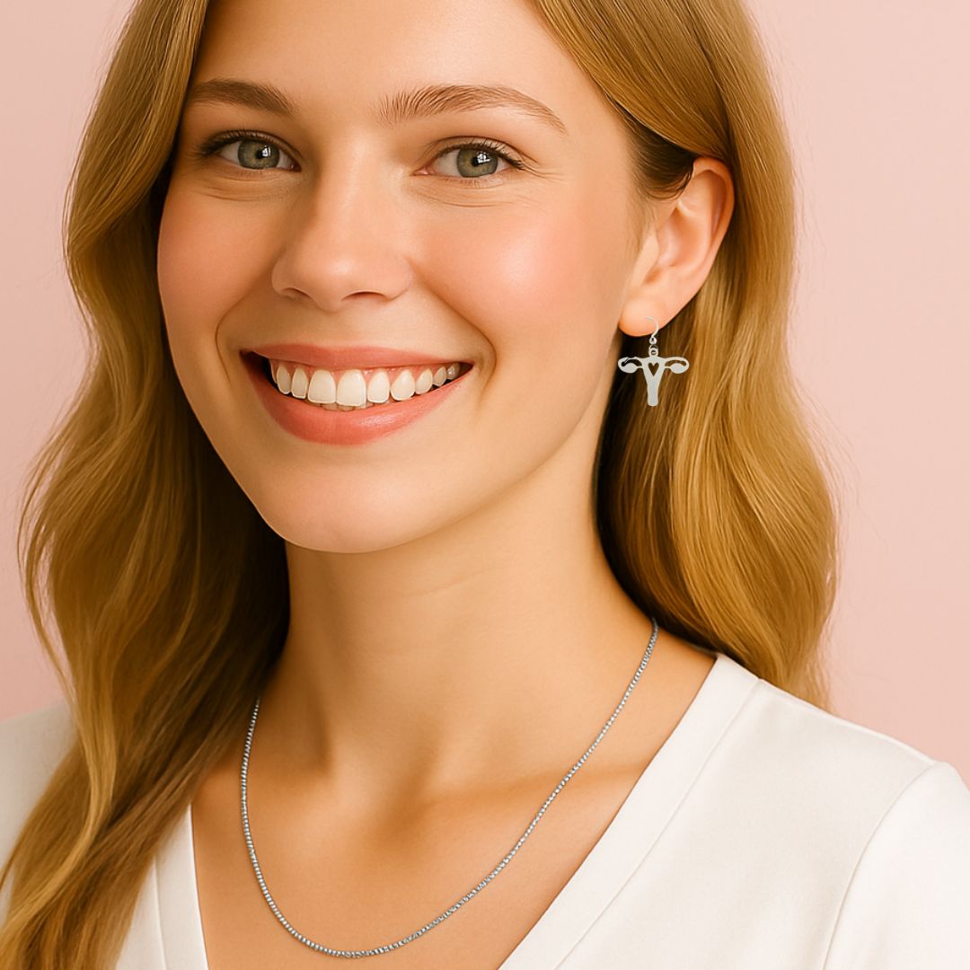 These uterus earrings and necklace are a bold and meaningful accessory, perfect for celebrating women's health and anatomy. Crafted with intricate detail, they are designed for those who appreciate the beauty and complexity of the human body. Ideal for medical professionals, biology enthusiasts, or anyone passionate about women's rights, these earrings and necklace are available in both gold and silver, making a powerful statement in any collection.